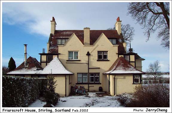 可別小看圖上的這間房子(Friarscroft),按照在這裡已住上兩、三年頭的博士學生「東尼」的說法,它可是已經有超過百年的歷史(所以裡頭也流傳著不少鬼故事)。雖然房子年紀老,但因為蘇格蘭人的優越整修房屋技巧,它不但看起來漂亮,住在裡頭也是非常舒適的,所以包括喬治、愛飛在內的所有住戶,幾乎一致公認這是史特林大學給學生的最豪華宿舍了。當初不知是不是祖先積德,馬蘭達跟我才能夠申請到這間房子。