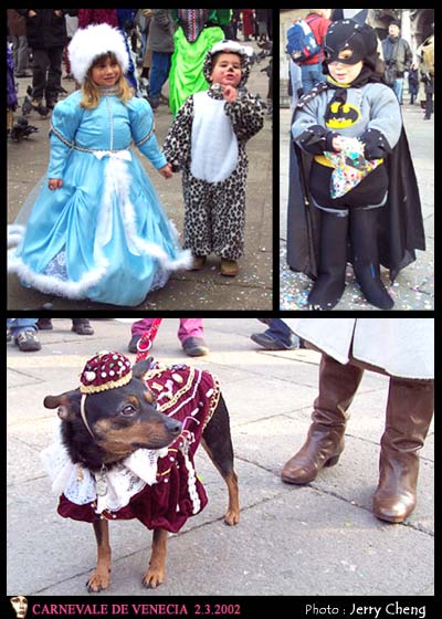 之前已經說過,在嘉年華期間的聖馬可廣場上,蜂擁而至的群眾擠滿了各處,除了一堆搶著看熱鬧的觀光客外,當然鎂光燈的焦點還是集中在那些裝扮的五研六色奇裝異服的人士們。
