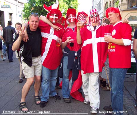 今天,原來是丹麥跟不知是哪國的比賽(我已經記不清楚了),由於廣場上擠滿了人,害我們共費時了快30分鐘才穿過許多手拿著啤酒、身著丹麥隊球衣、臉上畫滿紅色油彩的激動球迷,非常辛苦。半小時後,球賽結束,丹麥獲勝了!當我們正在逛著老街時,許多熱情(應該說是激動)的球迷湧上老街,一邊揮舞者丹麥國旗、邊唱歌邊喝脾酒、慶祝著這場勝利。