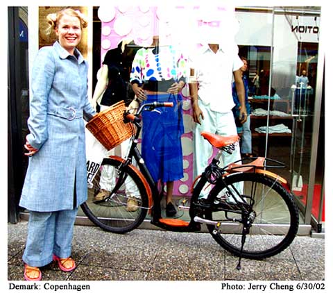 第二天大清早,我們再度搭乘巴士出發,坐在巴士的第二層,隔著眼前大片玻璃,看著一個個男男女女,騎著腳踏車在朝陽中前進,不由得有一種很感動的心情。看啊!哥本哈根,這才真是個先進的大城,一個乾淨、舒服、沒有污染的現代都市。