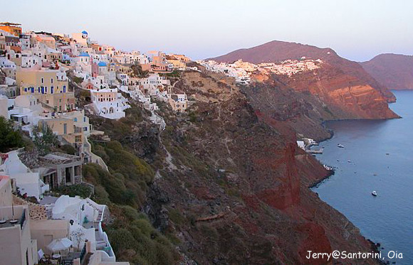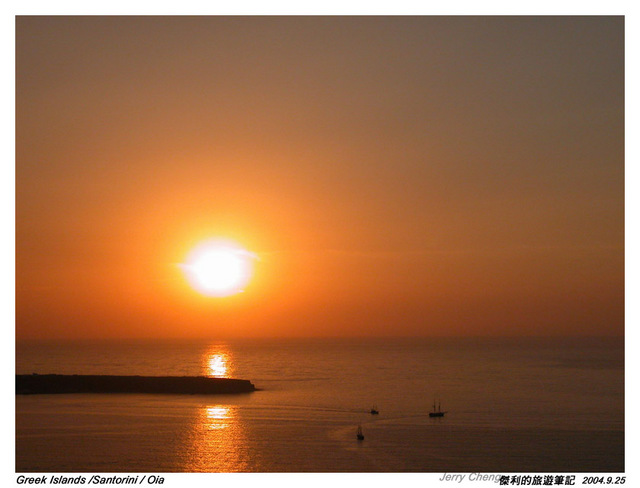 用餐中喬治告訴我,今天有一個重頭戲,就是傍晚要去Oia (伊亞)看夕陽。在這趟旅程還沒展開前,我就已經從網路跟旅遊書上得知,Oia的夕陽素有「世界最美麗夕陽」的美譽。仔細想想,從小到大,我目睹夕陽西沈的經驗竟然寥寥無幾,能夠親眼看到世界最美麗的夕陽,實在令人期待,但擔心的是,帶來的寶貝相機到底能不能拍下這寶貴的一刻呢?