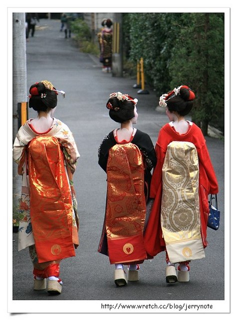 其實幾乎全都是日本女孩裝扮的「假」藝妓,唯一有可能的就是在附近巷道拍到的「老藝妓」,